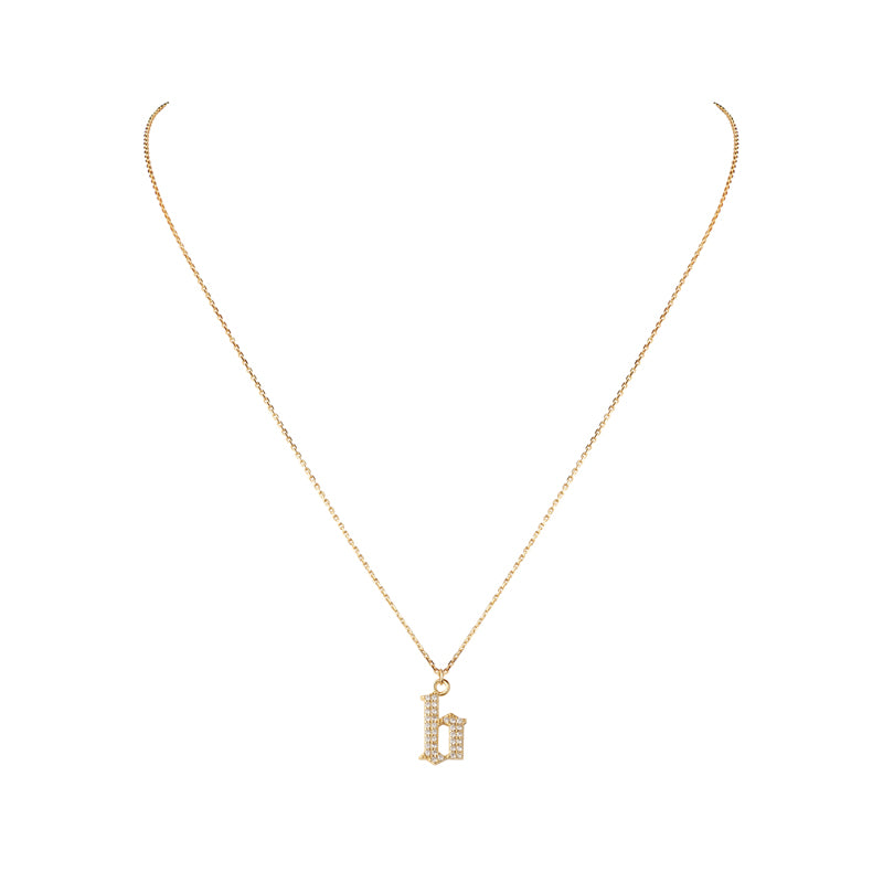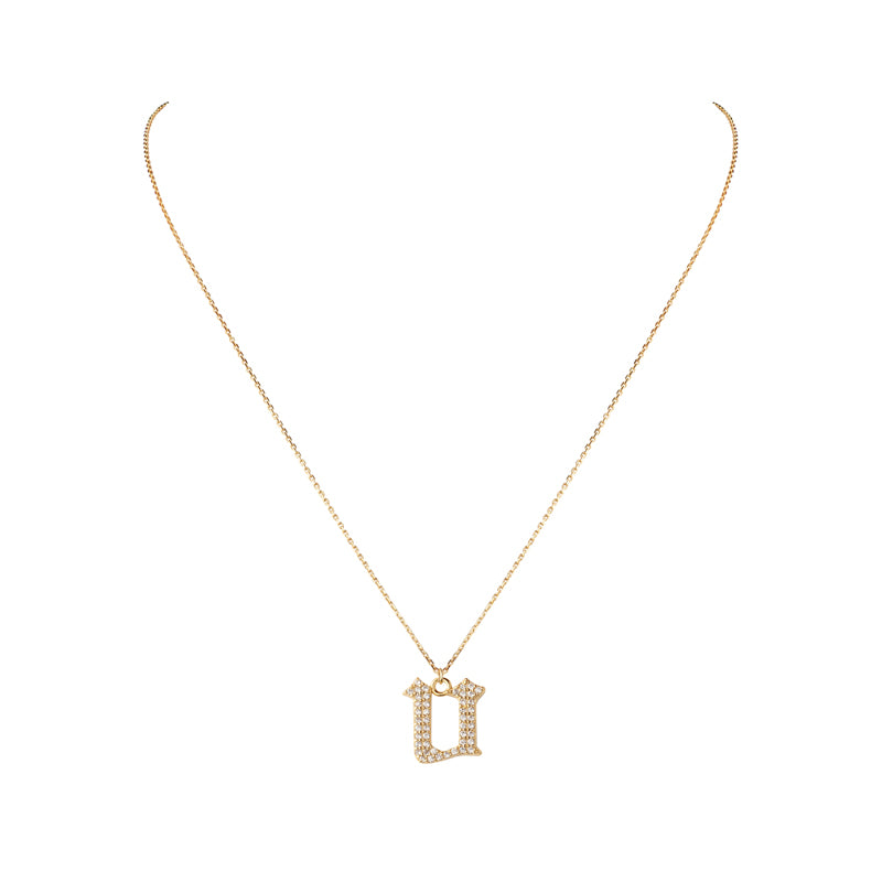 Customize your necklace stack with a gothic letter initial pendant. Pick a letter that is meaningful to you and wear it close to your heart.