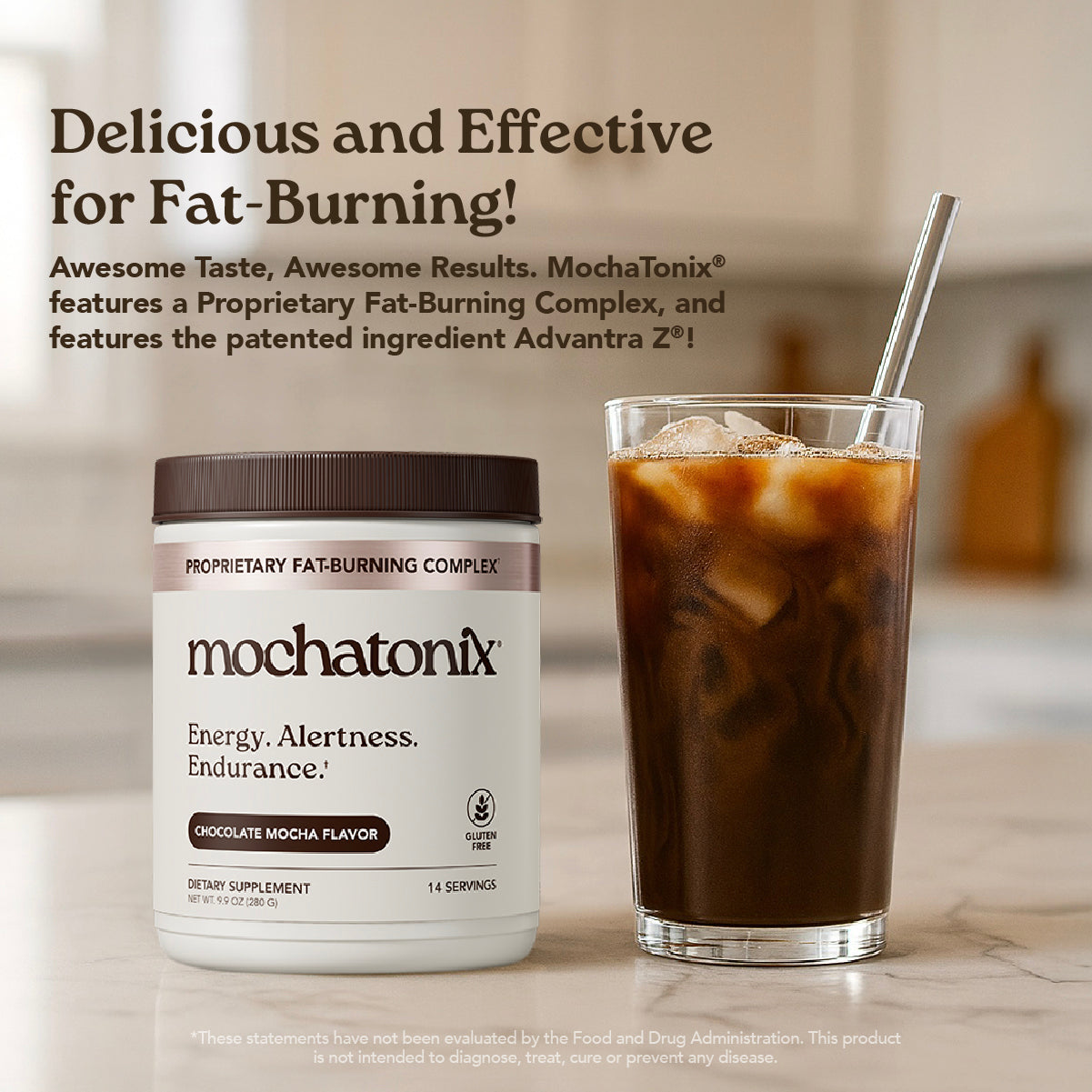 MochaTonix is a nutritionally balanced drink, available in cappuccino, mocha and vanilla flavors. Not only does it provide key nutrients for optimal health, it also provides a pleasant boost of energy and increases metabolism, thus stimulating weight loss. MochaTonix's advanced formula features patented ingredient Advantra Z®, which helps burn fat and increase physical performance. Derived from the Chinese herb Citrus aurantium, Advantra Z promotes lipolysis, the breakdown of fat, and thermogenesis, the production of body heat in muscle and fat. When coupled with an exercise routine, MochaTonix provides a dramatic edge to hectic, sometimes overwhelming lives. It leads to increased energy and physical performance, because the body can efficiently convert free fatty acids released from stores of fat into additional energy.