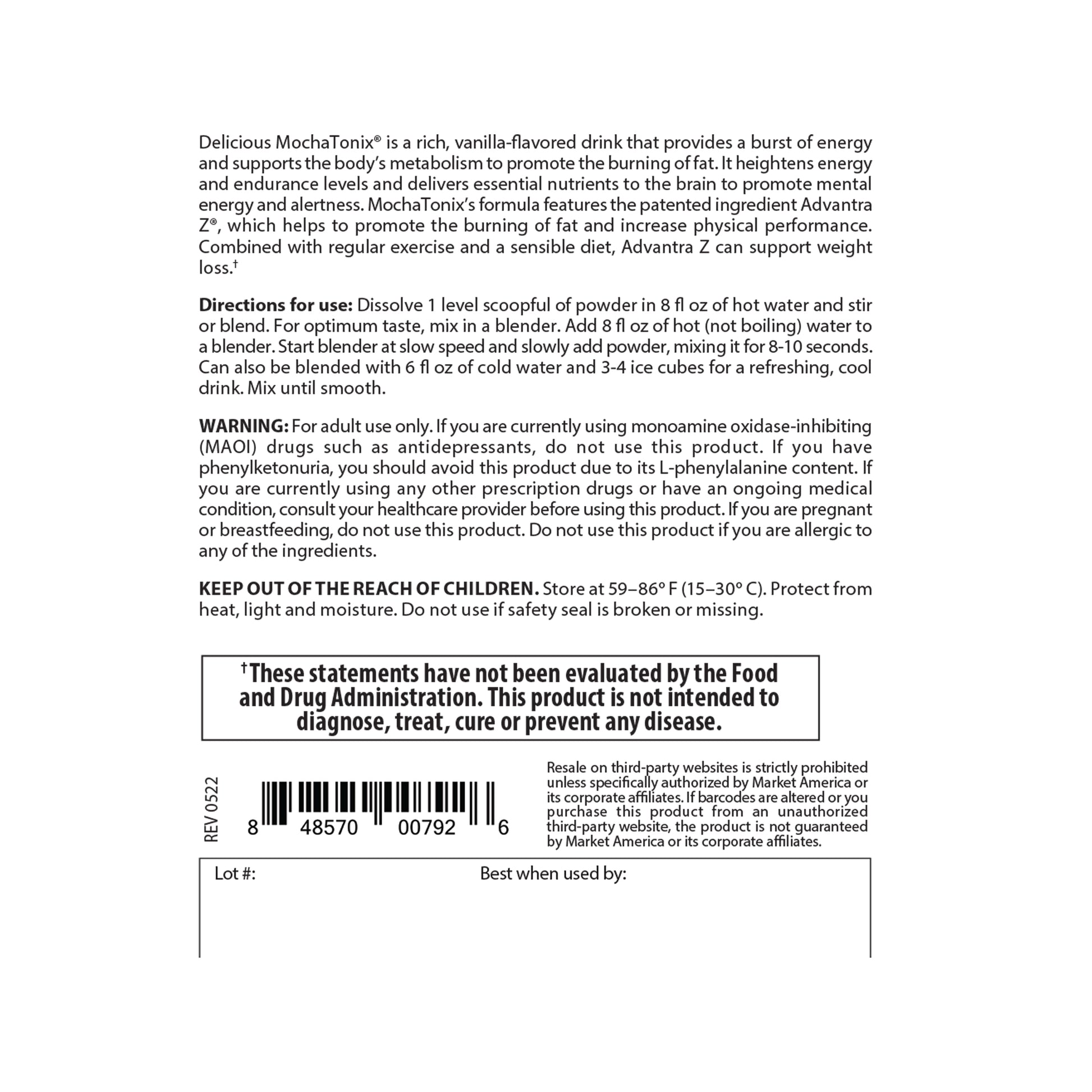 From Ginkgo biloba to Advantra Z and B-vitamins, MochaTonix will heighten your energy, alertness and endurance. MochaTonix contains a myriad of proven, natural ingredients that offer a wide range of benefits.