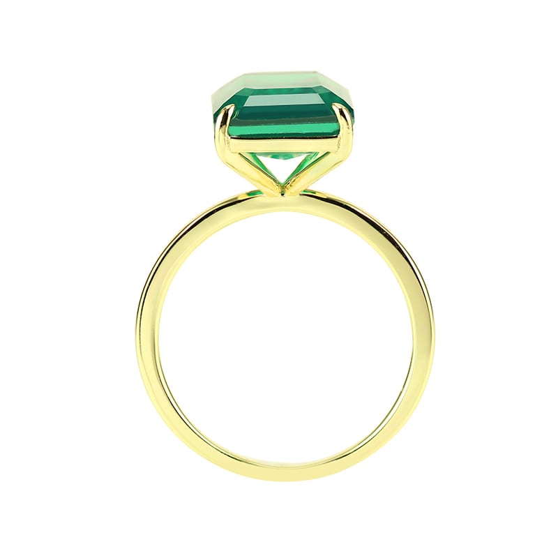 Combining the simplicity of a gold band and vivid green gemstone simulant, this prong set ring is the perfect pop of color for your everyday look, or an elevated accent piece for your fine attire.