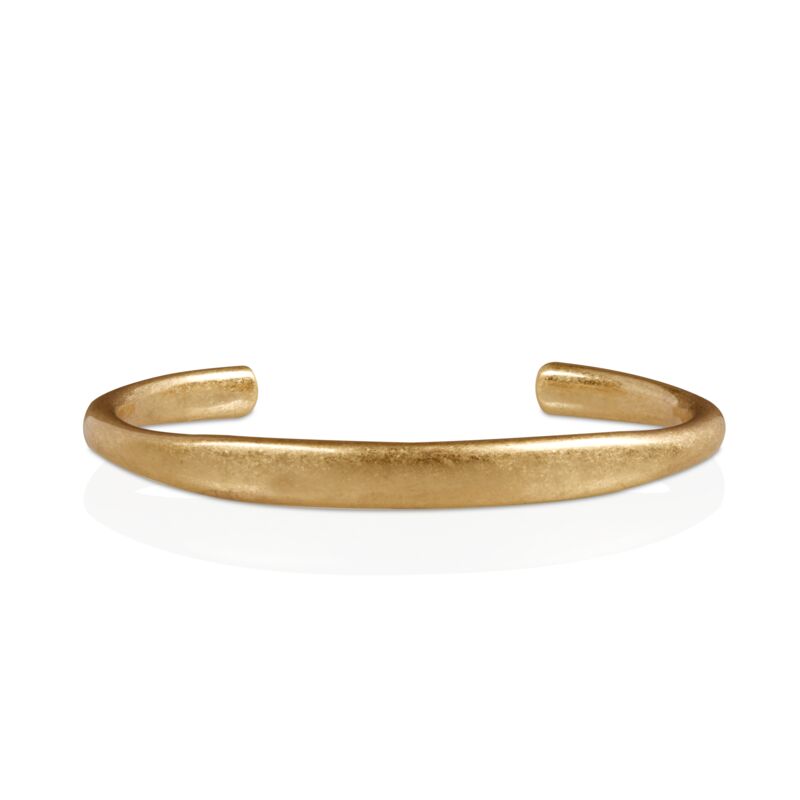 Simplicity at its finest, this worn satin finish cuff is an everyday staple. Designed to give you the look of a vintage yet modernized piece of boutique jewelry, this cuff offers extreme versatility. The intentionally uneven, worn satin finish makes each cuff slightly different. These designed varying irregularities give it the quality of an heirloom accessory that will look more beautiful with consistent wear. This cuff is incredibly durable and perfect for the modern woman on the go.