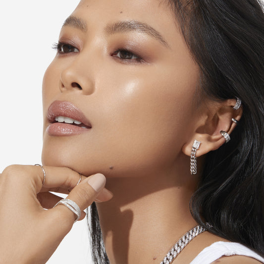 OPHELIA - 迫鑲長方鑽圈形耳環
