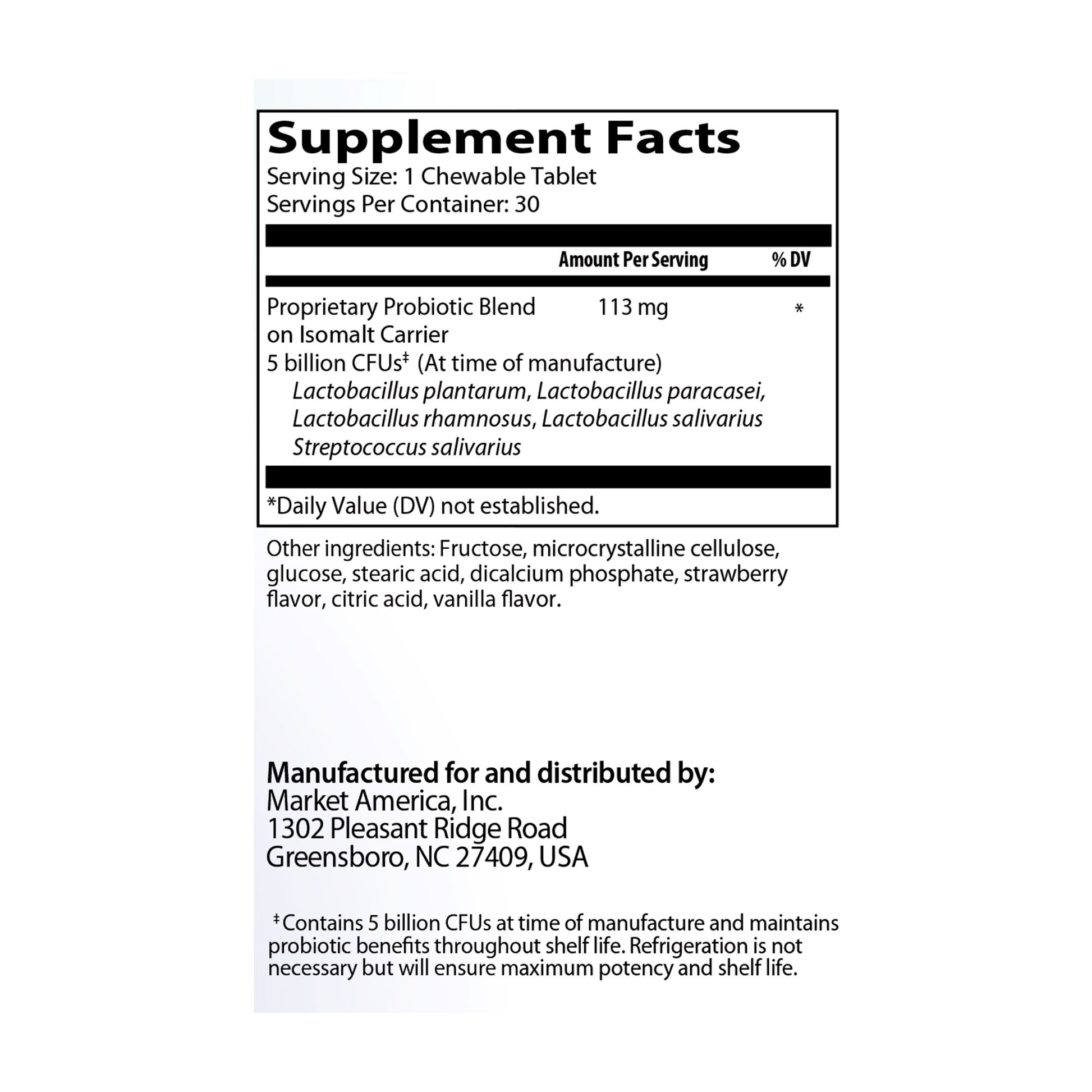 此水果口味的嚼片美味可口,讓兒童食用他們的益生菌補充品變得簡單易行。這只是DNA Miracles兒童益生菌嚼片成為目前市場上最優質的益生菌補充品的諸多原因之一,我們承諾為您的孩子提供最卓越的產品及呵護。