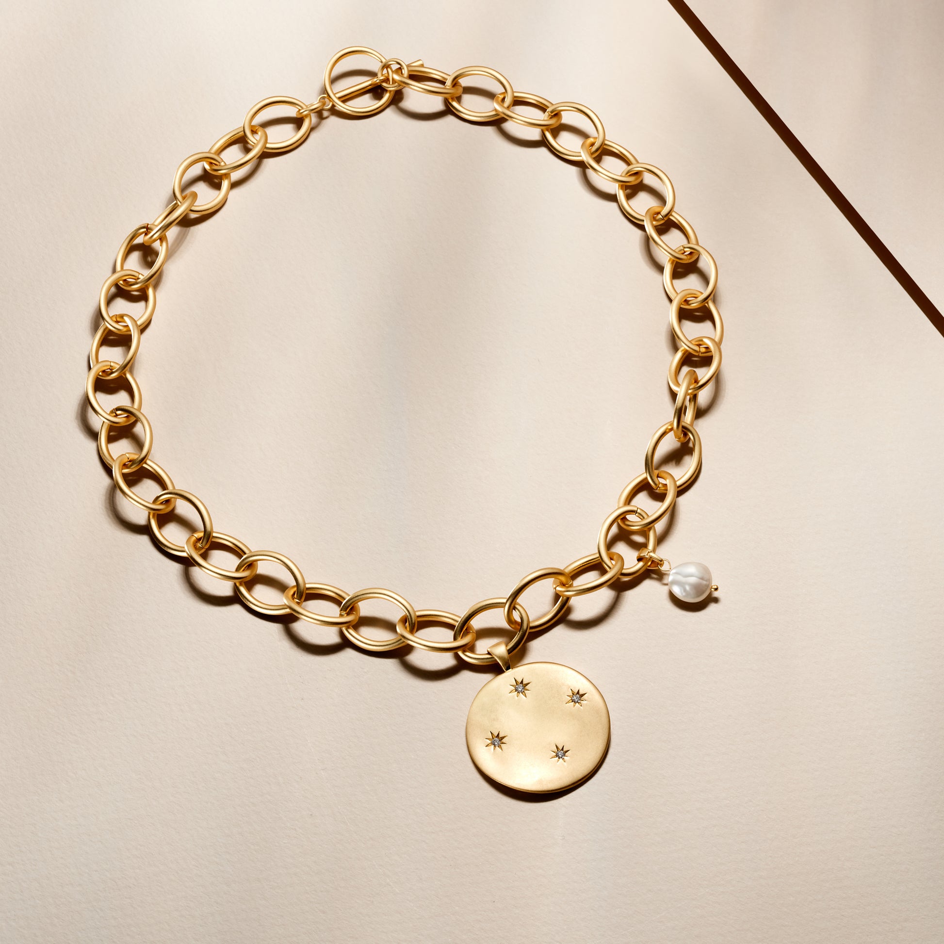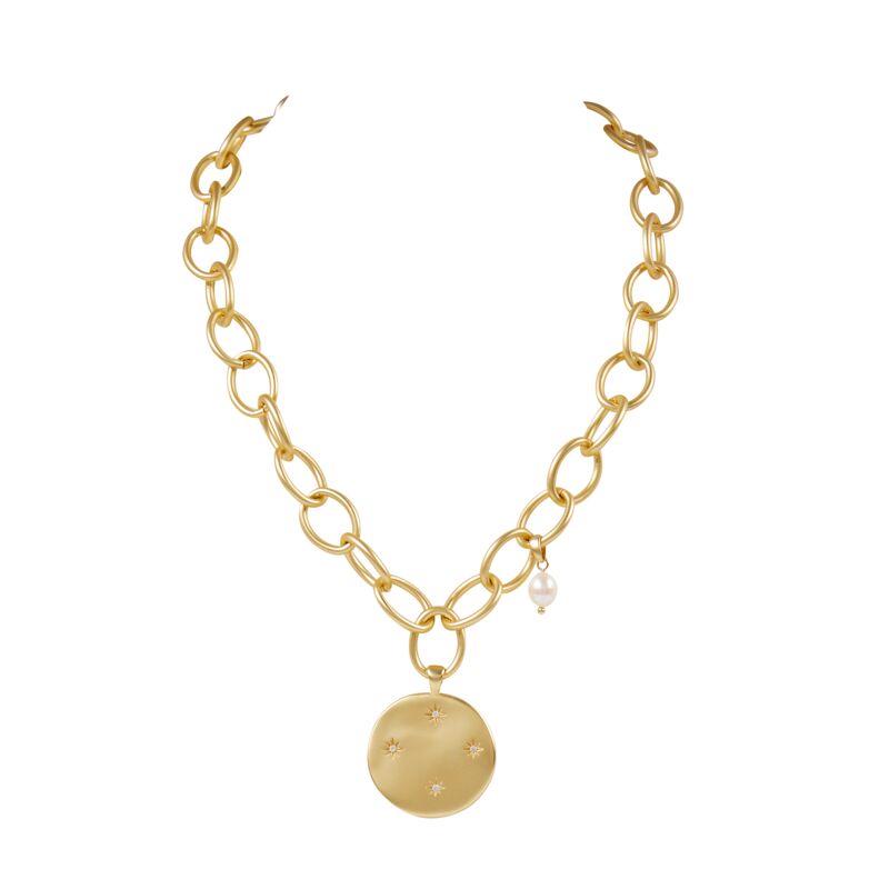 Amber Ridinger-McLaughlin的創作,這款項鍊擁有單顆巴洛克珍珠與鐫刻璀璨星雲的吊墜作為綴飾,是您的珠寶收藏中永不過時的絕色。綴飾於這款項鍊的單顆養殖珍珠形狀與尺寸各異,擁有天然形成的瑕疵,正是典雅天成之美的高級呈現。