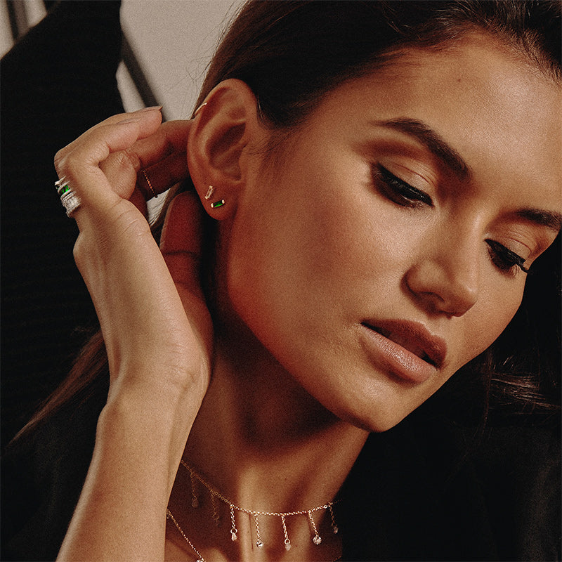 長方鑽迷你耳釘,可單獨佩戴或混合搭配