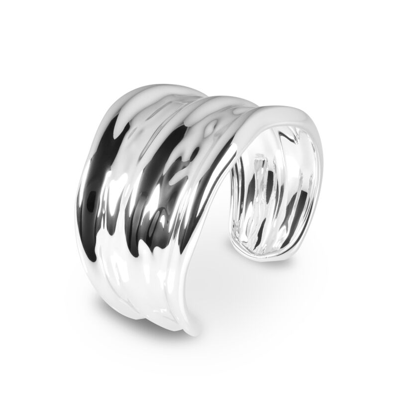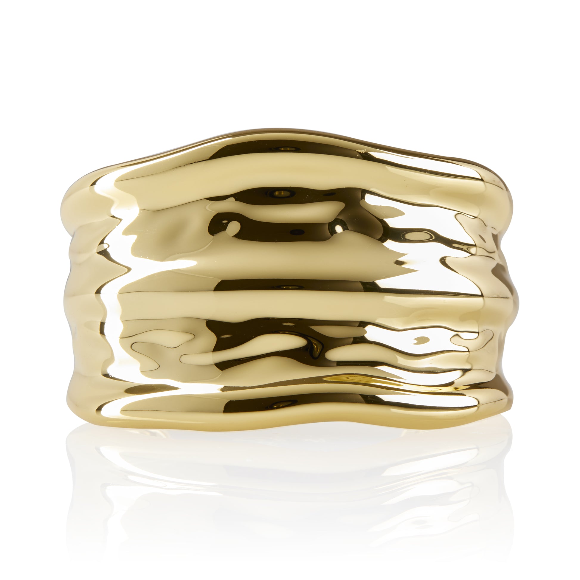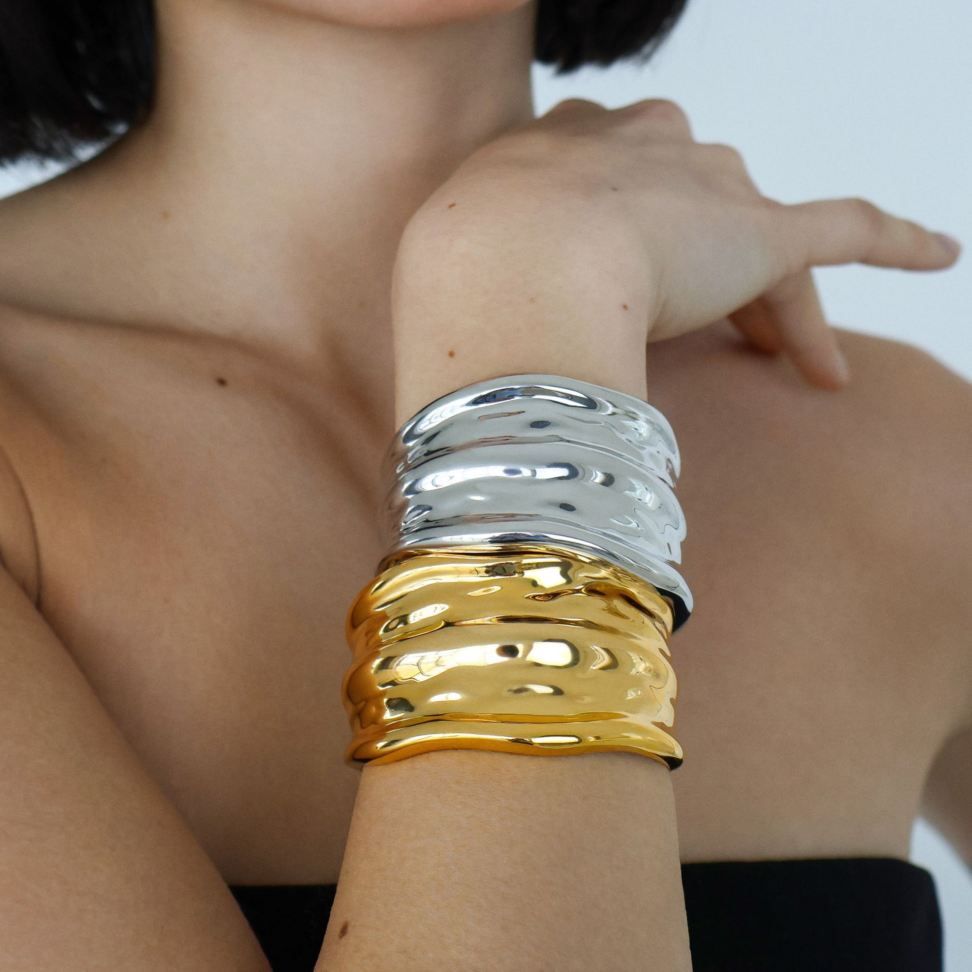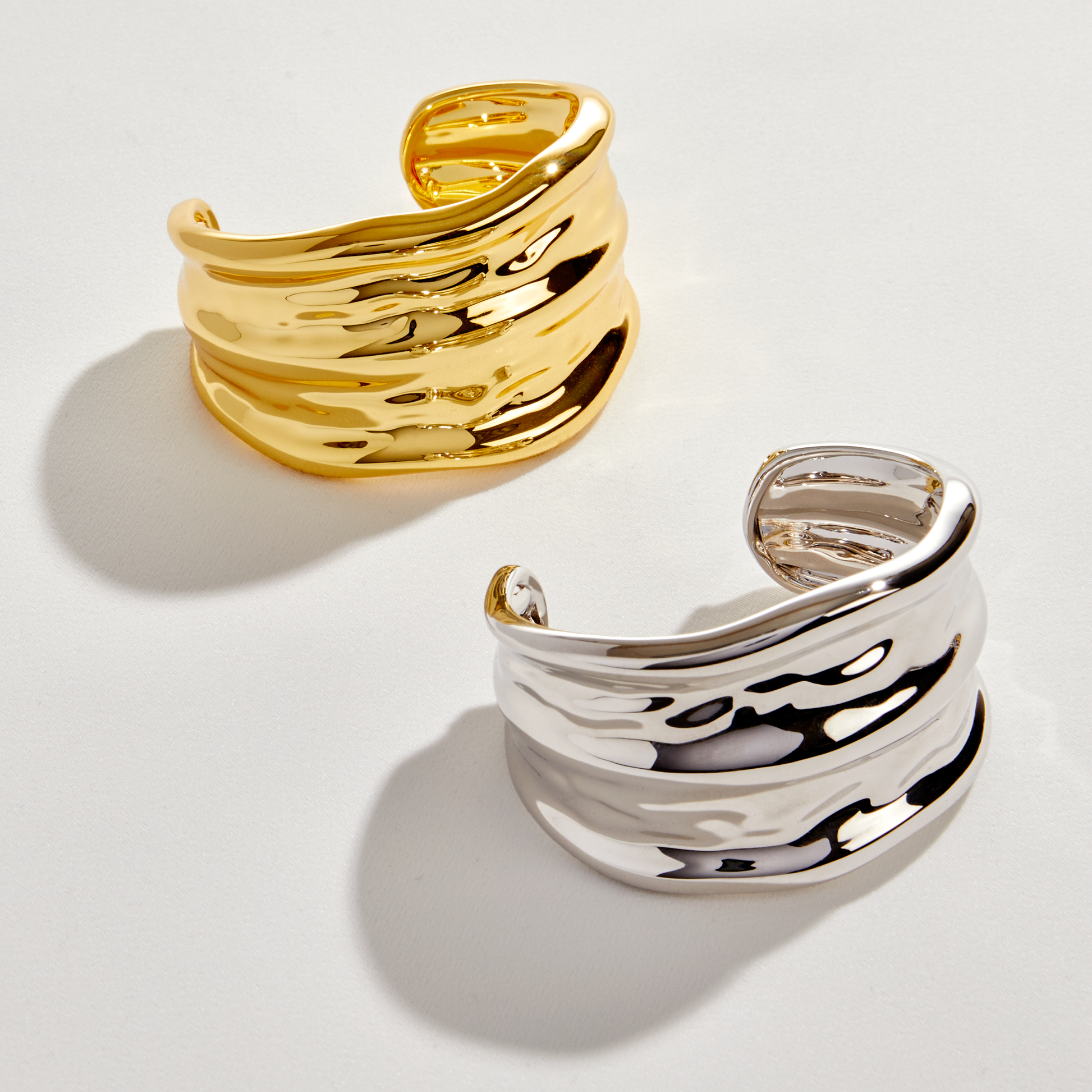 JACLYN寬版開口手鐲,為您的造型帶來卓爾出群的風格昇華。開口手鐲擁有優雅流麗的線條,呈現玻璃般光滑的立體波紋質感,為任何外觀造型增添品味典雅、又大膽無慮的精神意涵。亦休閒日常,亦精緻奢華,靈活百搭,美麗隨心,創造無窮穿搭風格。