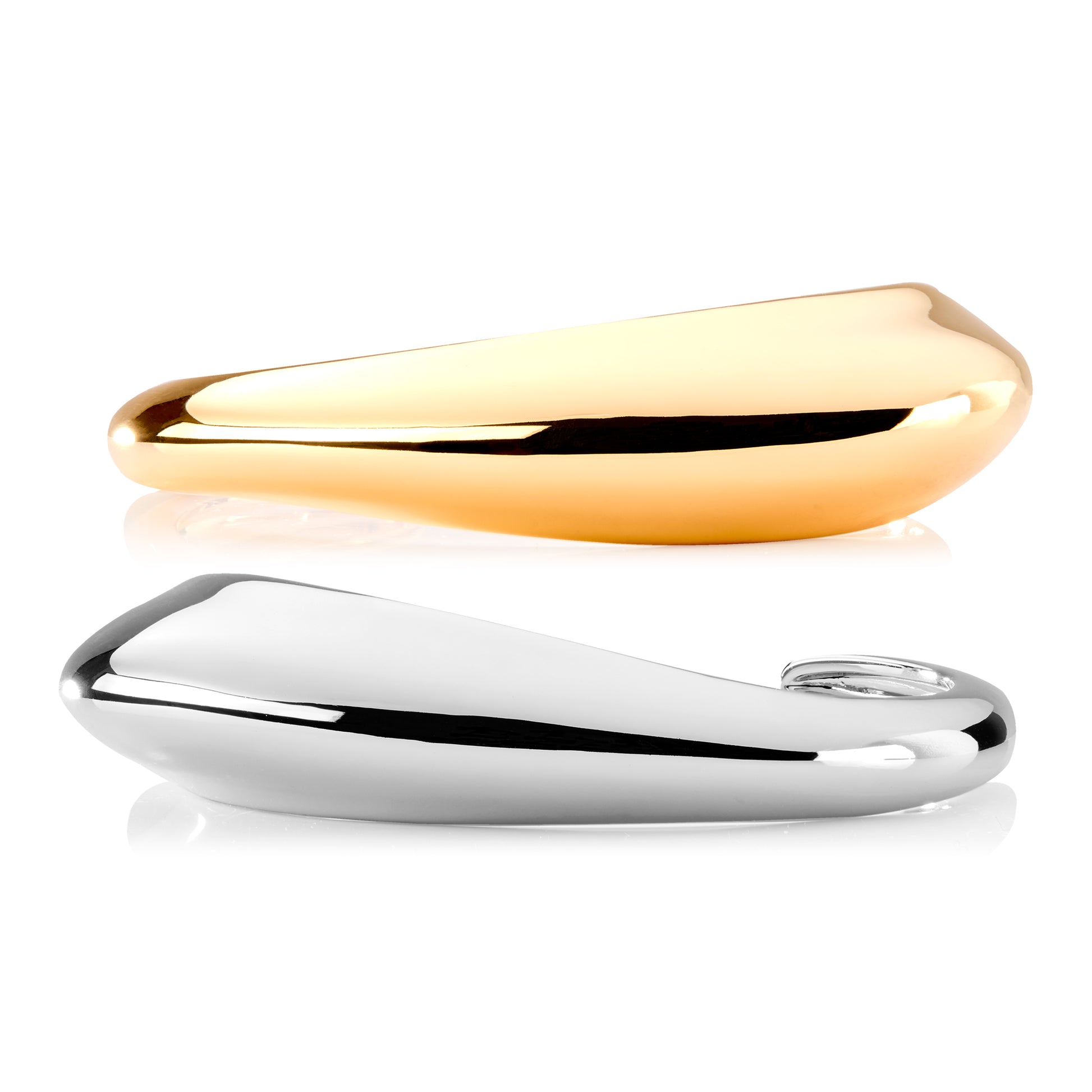 JADA耀眼手環,定義昇華風格。悠然流淌的幾何曲線勾勒出流光溢彩的自然立體構型,並運用強烈色彩對比的張力呈現兩種迷人風格 — 一款採用熠熠閃耀的金屬銠鍍層,另一款則綴以光澤亮麗的18K金鍍層。