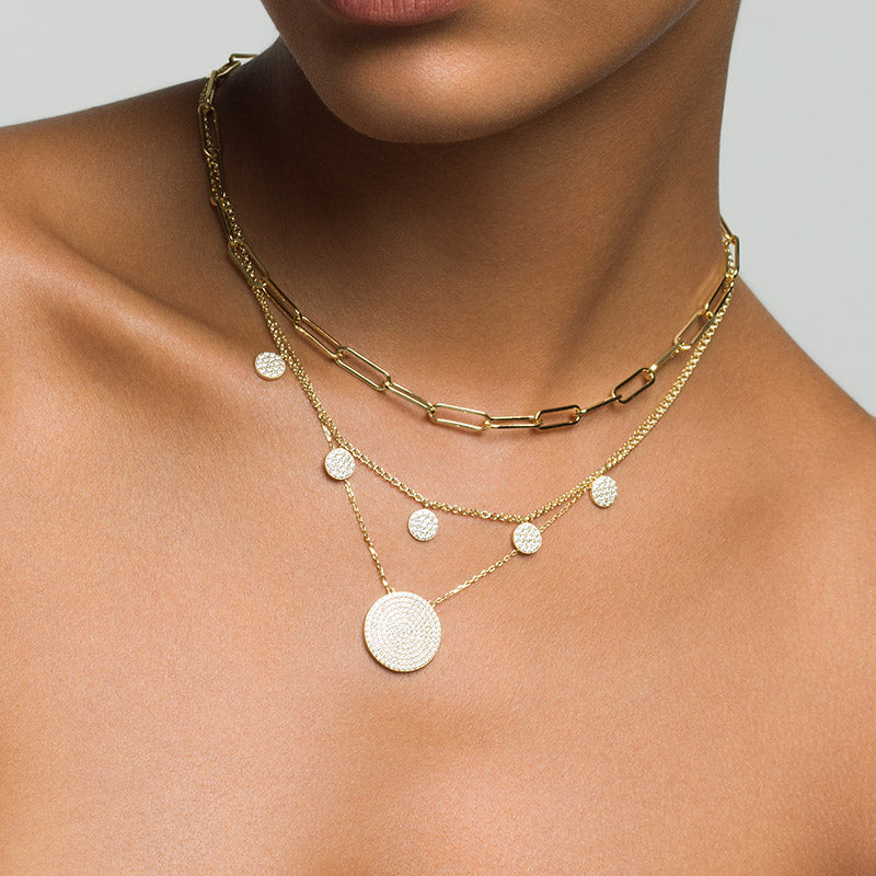 密鑲鑽圓幣單墜項鍊,可單獨配戴或混合搭配