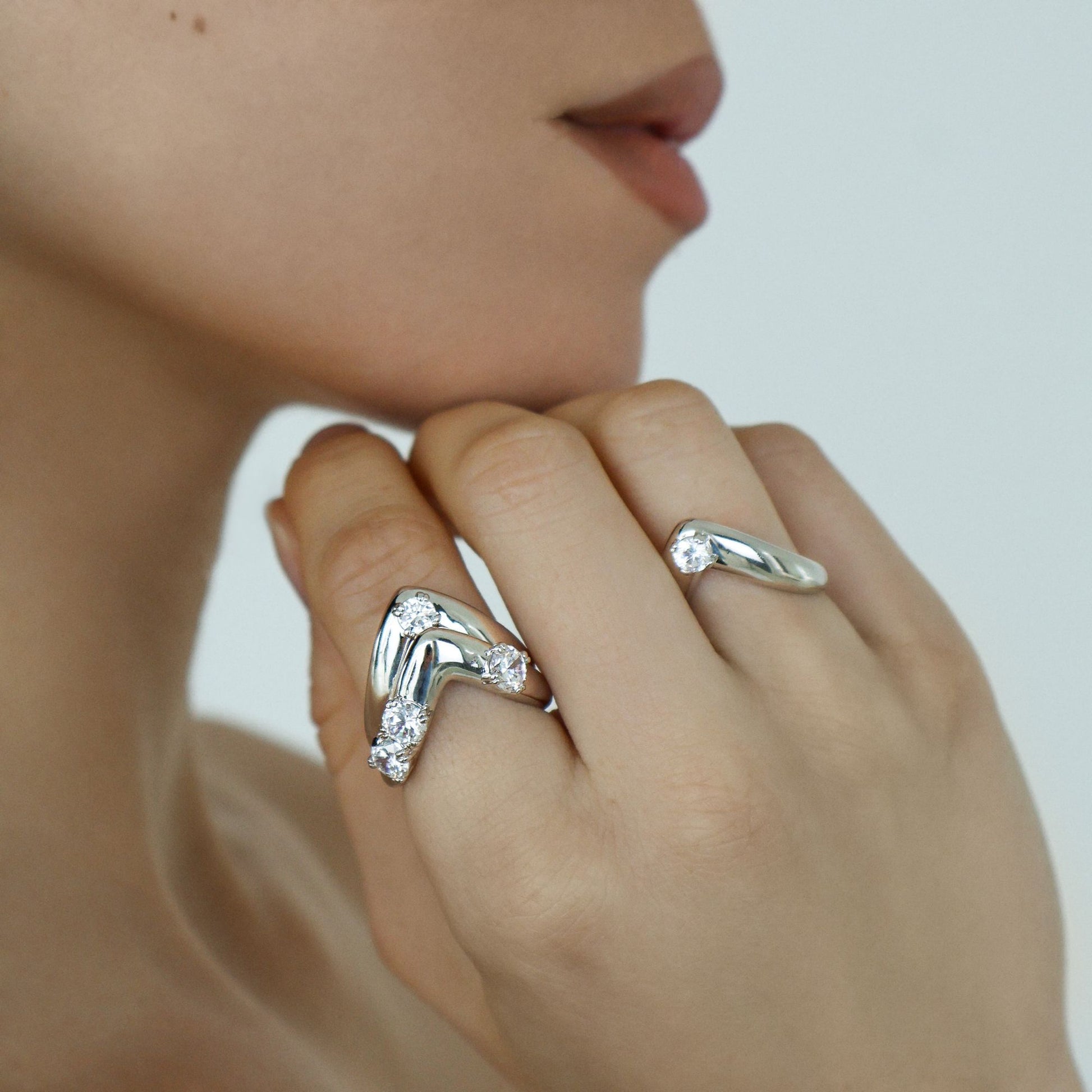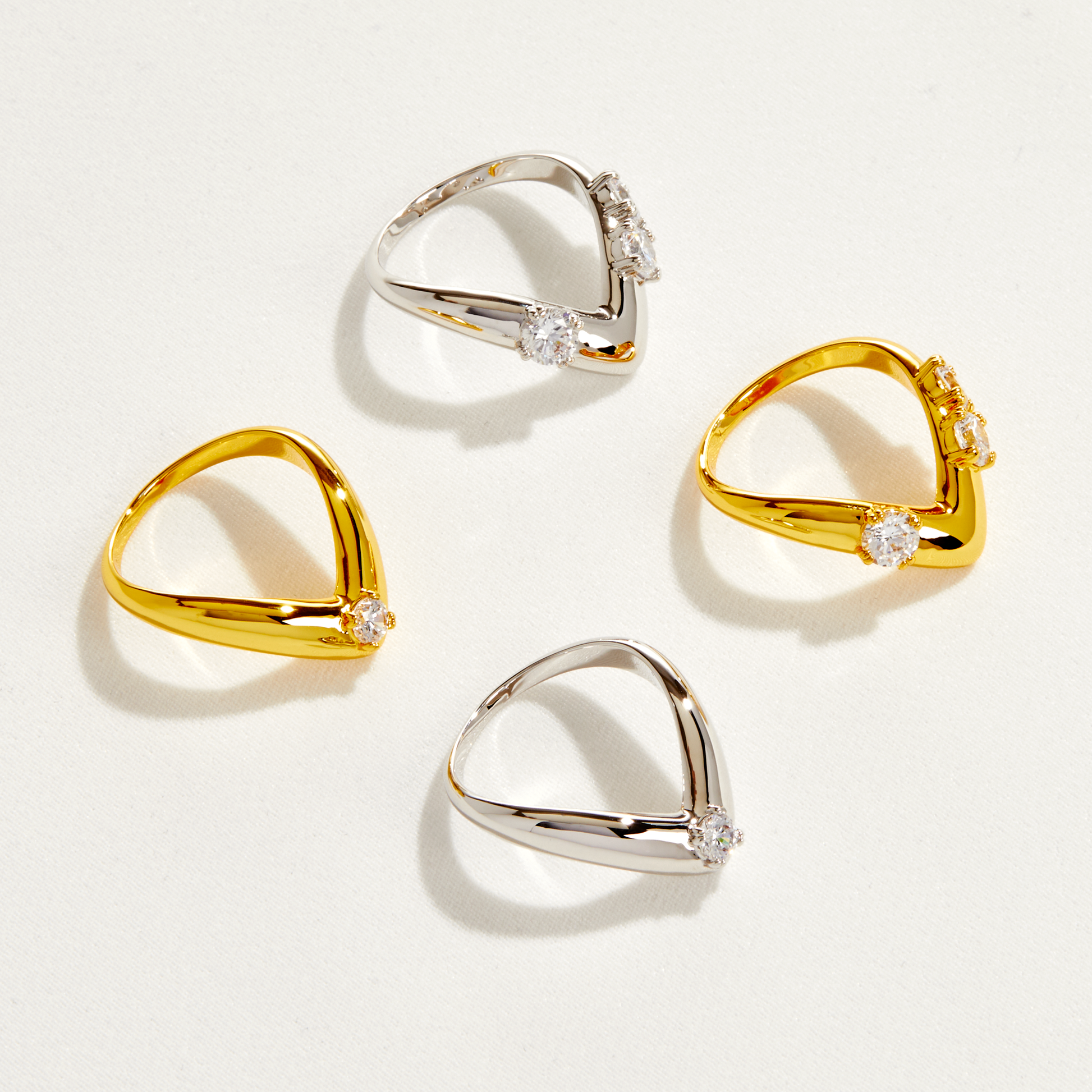 展現駕馭層次堆疊的藝術。LEXI V型爪鑲鑽雙戒組以多元百搭、輕鬆疊戴做為設計主軸,營造出豐富多彩的自我時尚語彙。兩枚一同配戴;妝點不同手指;V字向上或向下;您的風格由您做主。V字造型構築出獨特的設計元素,訴說玉手的無限魅力,讓您的手指線條更顯優雅修長。亦與您其它的Layered層次混搭珠寶愛品完美呼應。