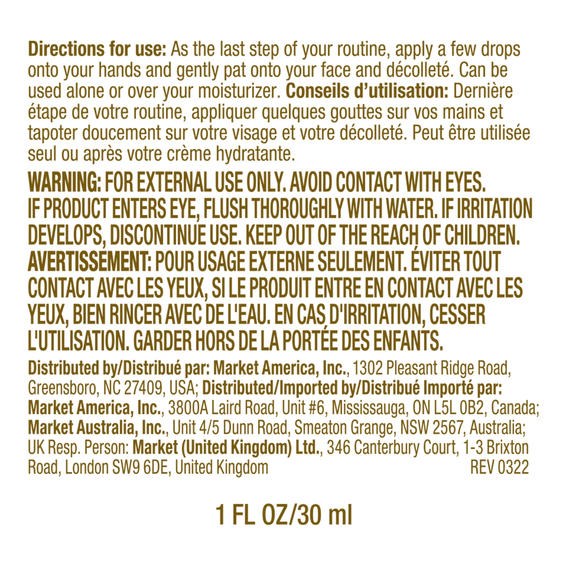 Level-up your glow with Lumière de Vie® The Elixir, a superior facial oil filled with obsession-worthy oils like sunflower, avocado, grape seed and apricot to deeply nourish and soothe the skin. As one of the finishing steps in your skincare routine, this silky oil will help maintain your healthy, youthful-looking complexion, leaving your skin feeling renewed. Its key ingredients work synergistically to deeply moisturize, maintain elasticity, minimize the appearance of dark spots and reduce the appearance of fine lines and wrinkles. Soak in the goodness of this luxury oil while helping protect the skin against free radicals and oxidative stress. Restore your radiance with Lumière de Vie The Elixir.