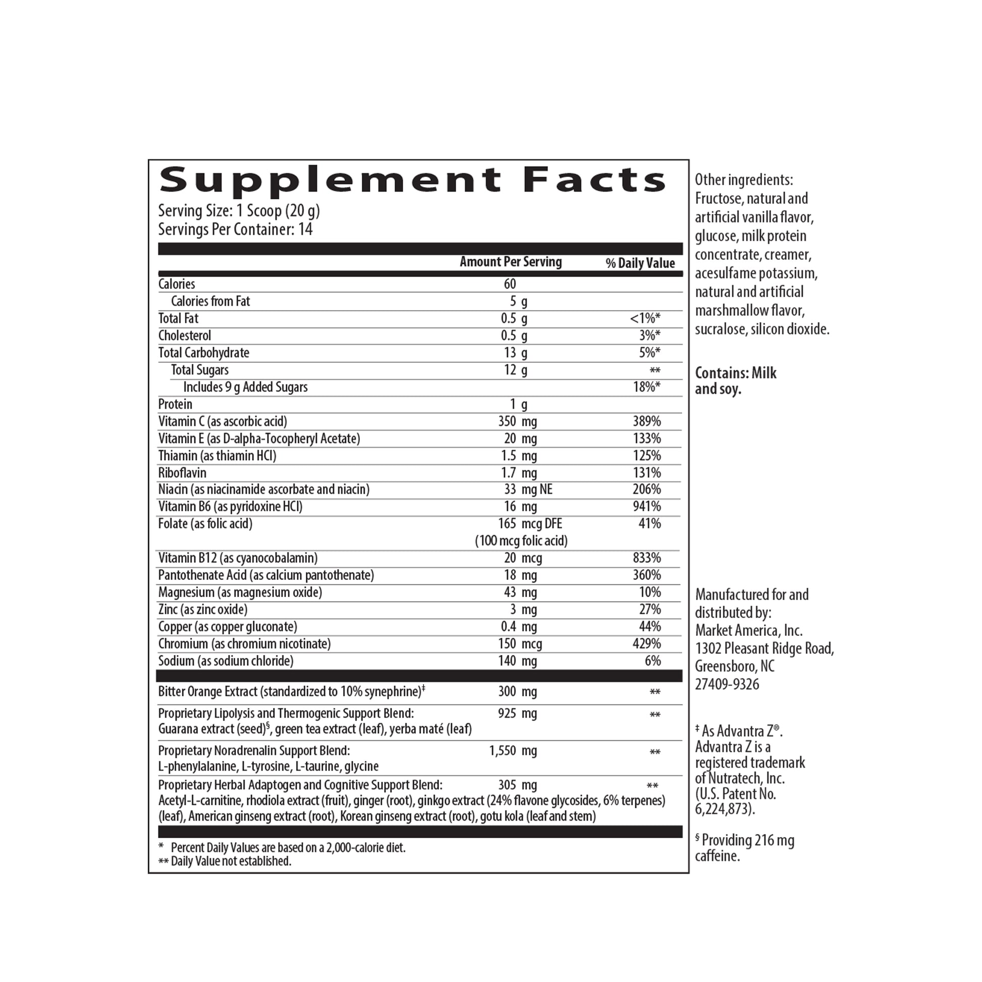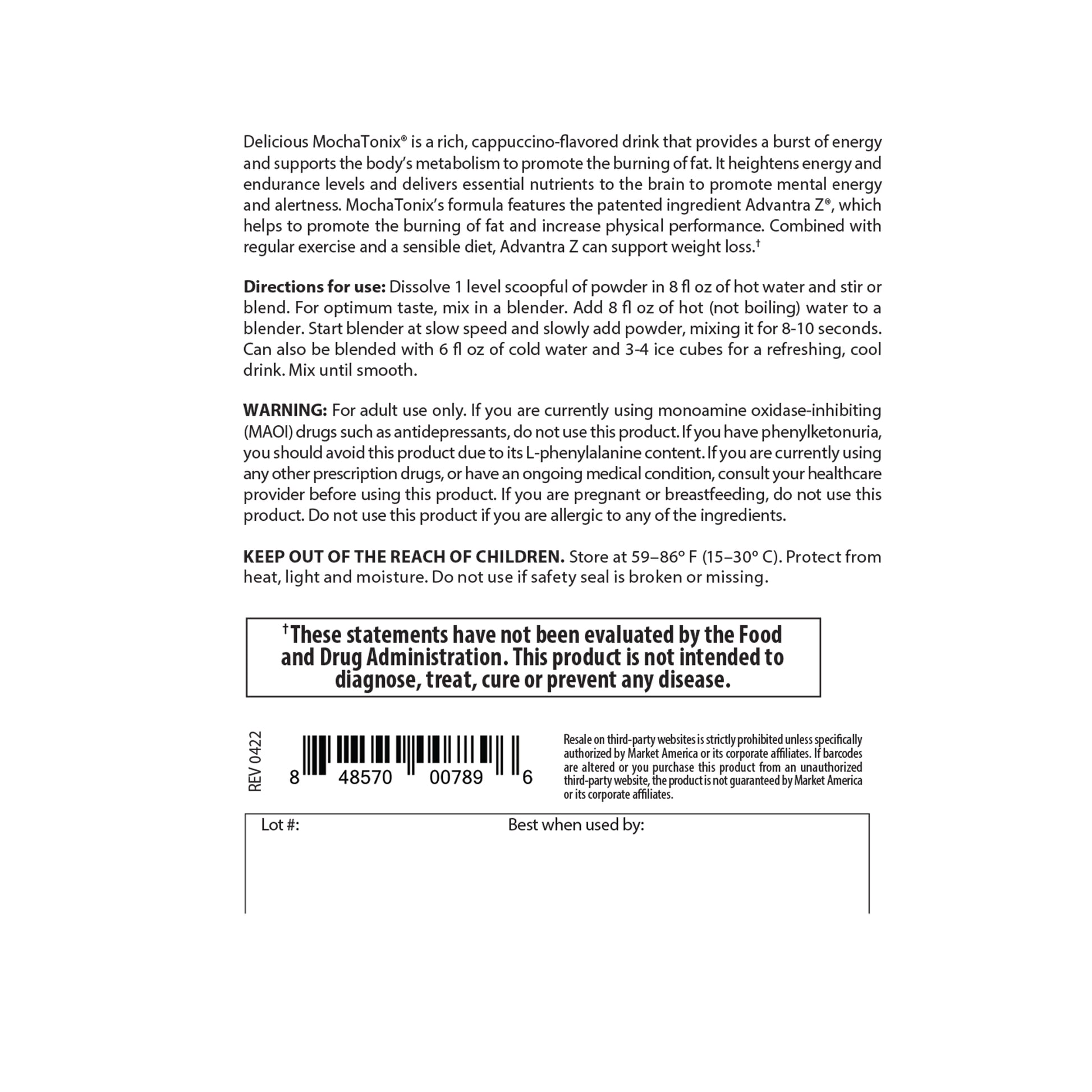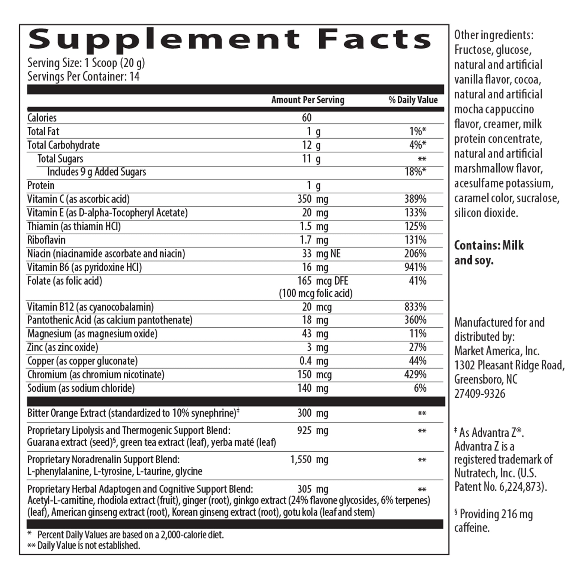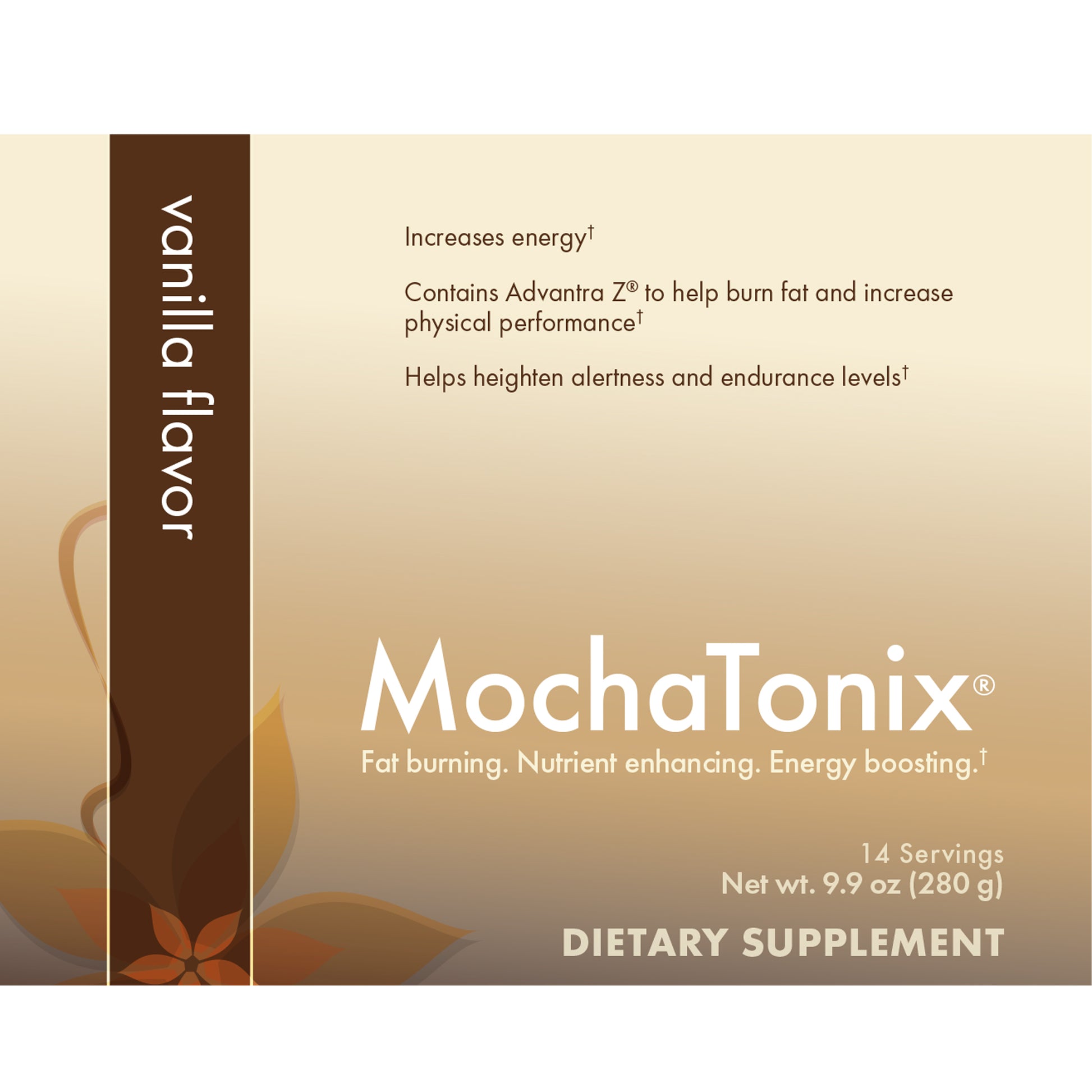 MochaTonix®提神飲品有何獨特之處? MochaTonix提神飲品是一種營養均衡的飲品,有卡布奇諾、巧克力摩卡和香草3種口味。它不僅提供理想健康所需的關鍵營養素,更為身體補充能量,加快新陳代謝,從而促進減重。MochaTonix提神飲品的先進配方包含專利成分Advantra Z®,有助燃脂和提升體能表現。Advantra Z提取自中國苦橙,可促進脂肪分解和生熱作用(即在肌肉和脂肪中產生熱量)。結合日常運動,MochaTonix提神飲品可讓您輕鬆應對忙碌不堪的生活。通過幫助人體有效地將脂肪儲存中釋放的脂肪酸轉換為額外的能量,MochaTonix提神飲品可提升精力和體能表現。 MochaTonix提神飲品不僅顯著加快人體的新陳代謝,還可有效提升腦力,為大腦輸送關鍵的營養以幫助合成必需的正腎上腺素(一種重要的神經遞質),讓您心智敏銳、精神集中、思維清晰。它有助補充由於忙碌和飲用過多咖啡因飲料而損失的重要氨基酸和激素, 從而讓您思維清晰,注意力集中,幫助您在日常工作中發揮頭腦的潛力。 MochaTonix提神飲品融合銀杏葉、Advantra Z和維生素B群,可提升您的精力、敏銳度和耐力。MochaTonix提神飲品包含多種經過試驗的天然成分,可為人體帶來廣泛的裨益。