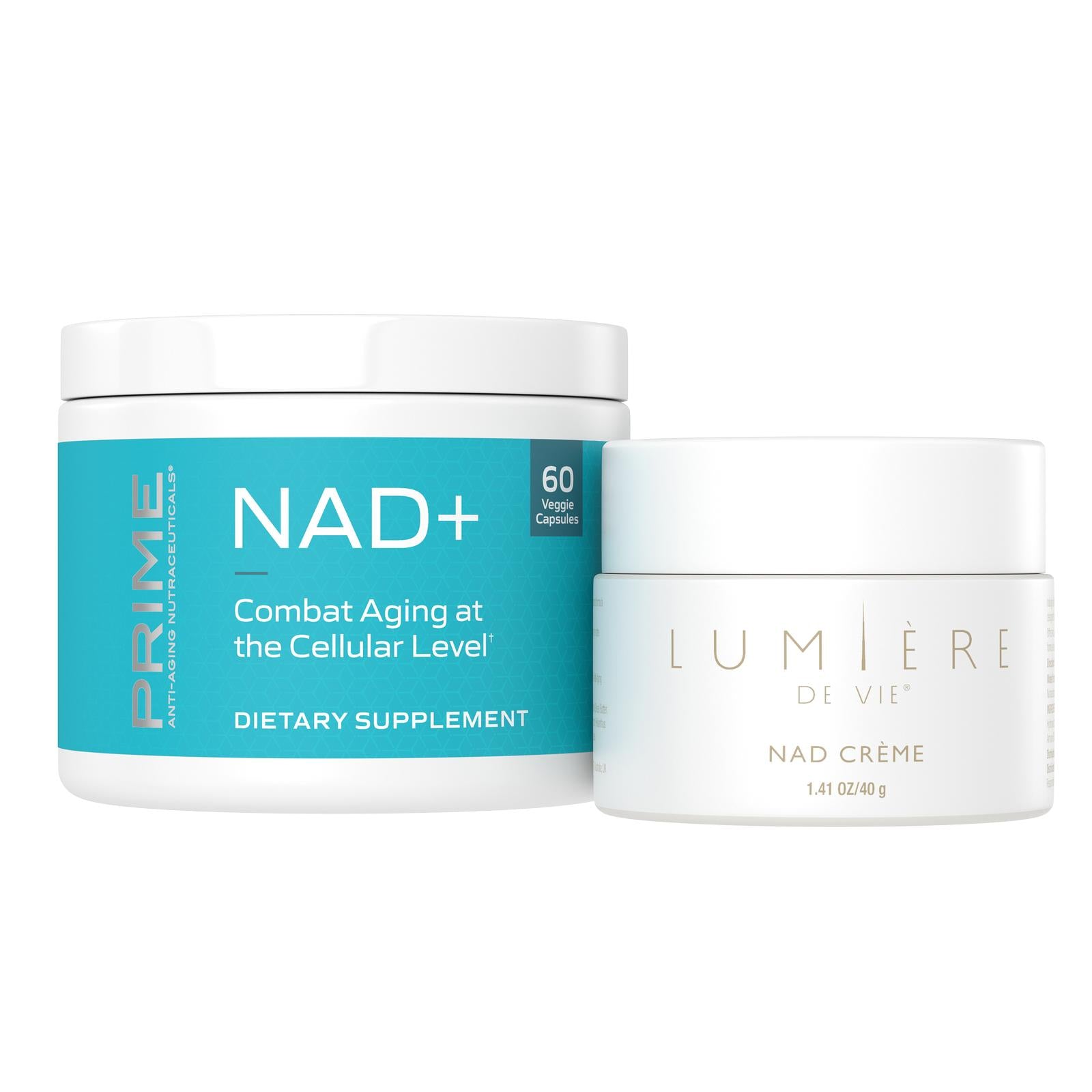 NAD+青春雙效組,由內而外同步滋養,支援年輕亮采與健康活力。這款黃金組合搭配我們以提升活力著稱的明星產品Prime Anti-Aging Nutraceuticals® NAD+菁源寶與全新亮相的焦點產品Lumière de Vie® NAD青春霜,由細胞層級為身體提供所需的抗老化保養方案。
