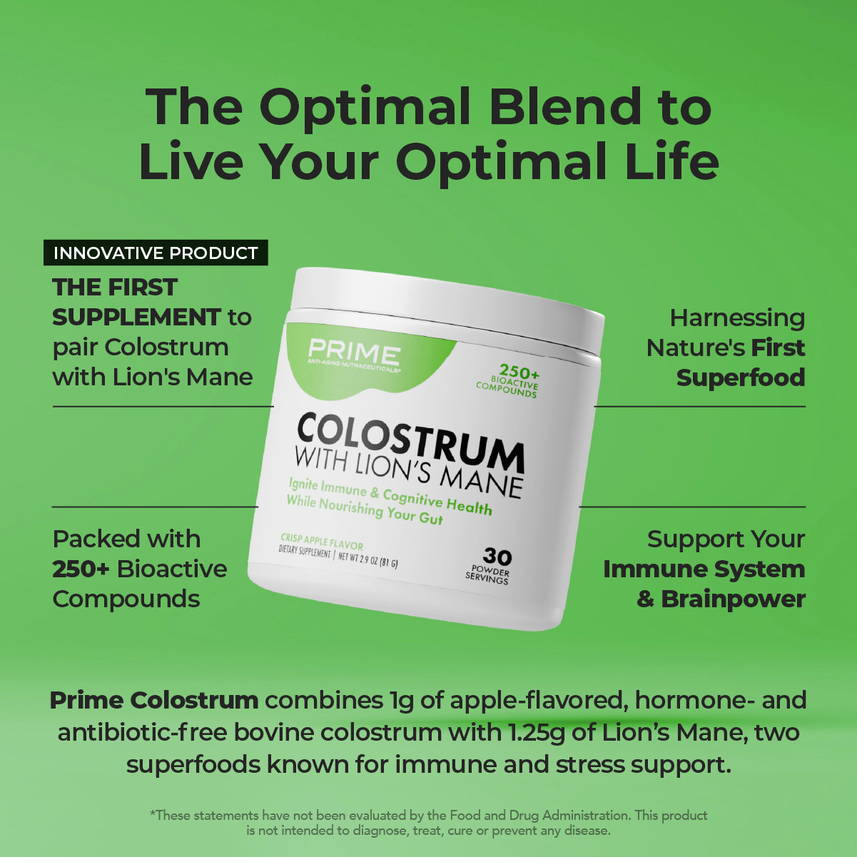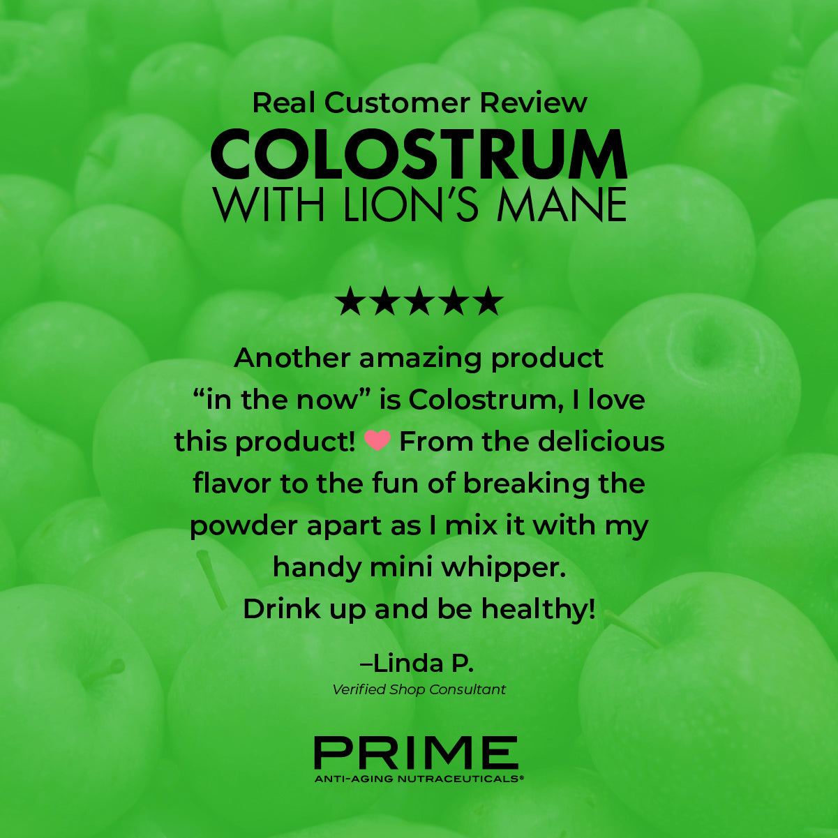 Prime牛初乳粉(含猴頭菇)開啟巔峰活力,全面支援您的認知、腸道、能量和整體免疫健康! Prime牛初乳粉結合了牛初乳與猴頭菇的獨有特性,兩大強效超級食物協力保持年輕的代謝活力。