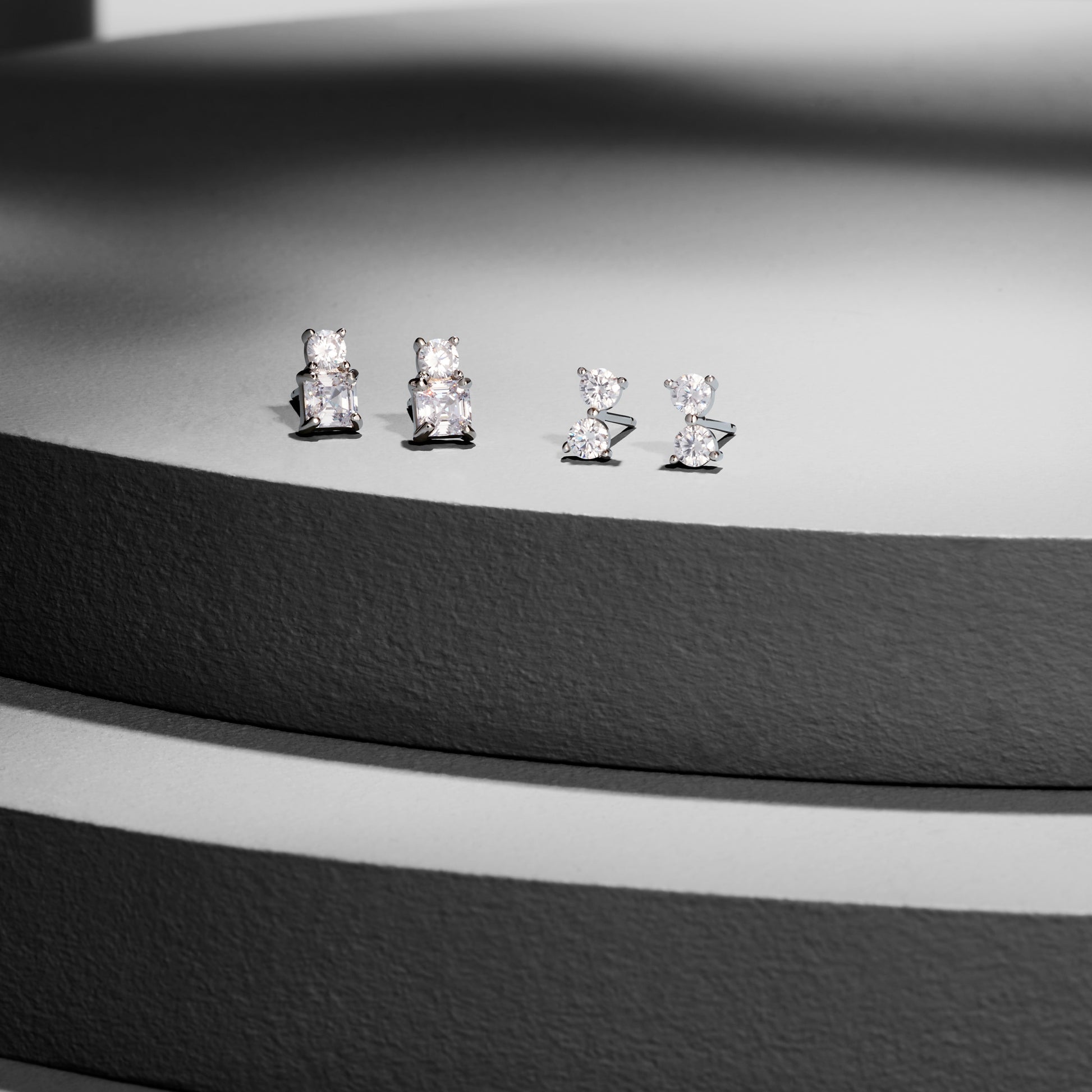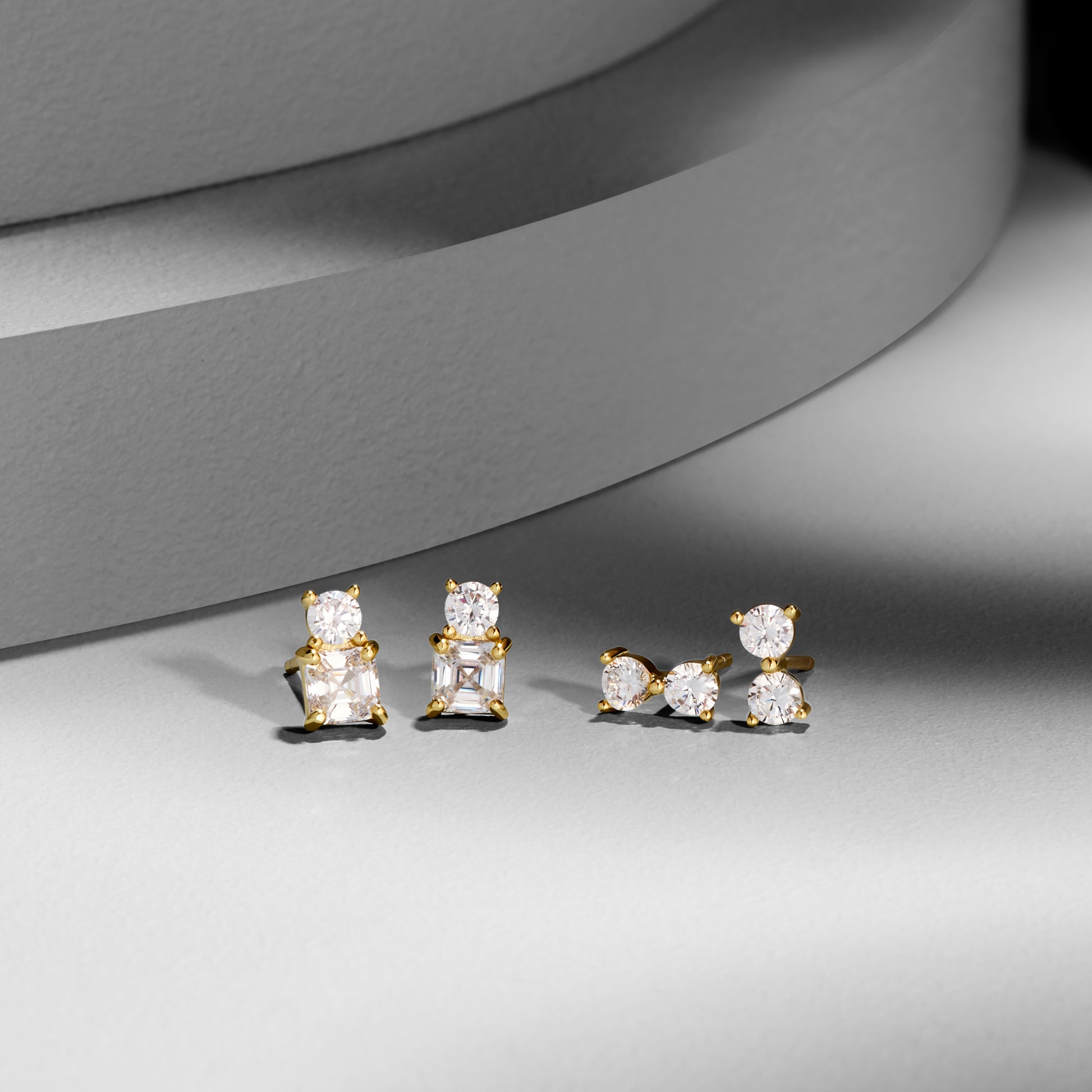 以整組起售、包含2對耳釘的組合,獨特、雅緻,楚楚動人。擁有多個耳洞人士的完美之選,適合日常玩轉百變造型;Sasha耳釘套組專為您的獨一無二量身打造。另類詮釋單鑽耳釘的經典之美,以兩顆圓形明亮式切割的寶石打造全然的精巧細緻,更融入充滿奇特的視覺趣味。第二對耳釘採用一顆上丁方形切割寶石,並在其上飾有一顆圓形明亮式切割寶石。耳釘套組由Amber Ridinger-McLaughlin精心設計,是專為Layered層次混搭珠寶創作的極具個人風采的傑作。