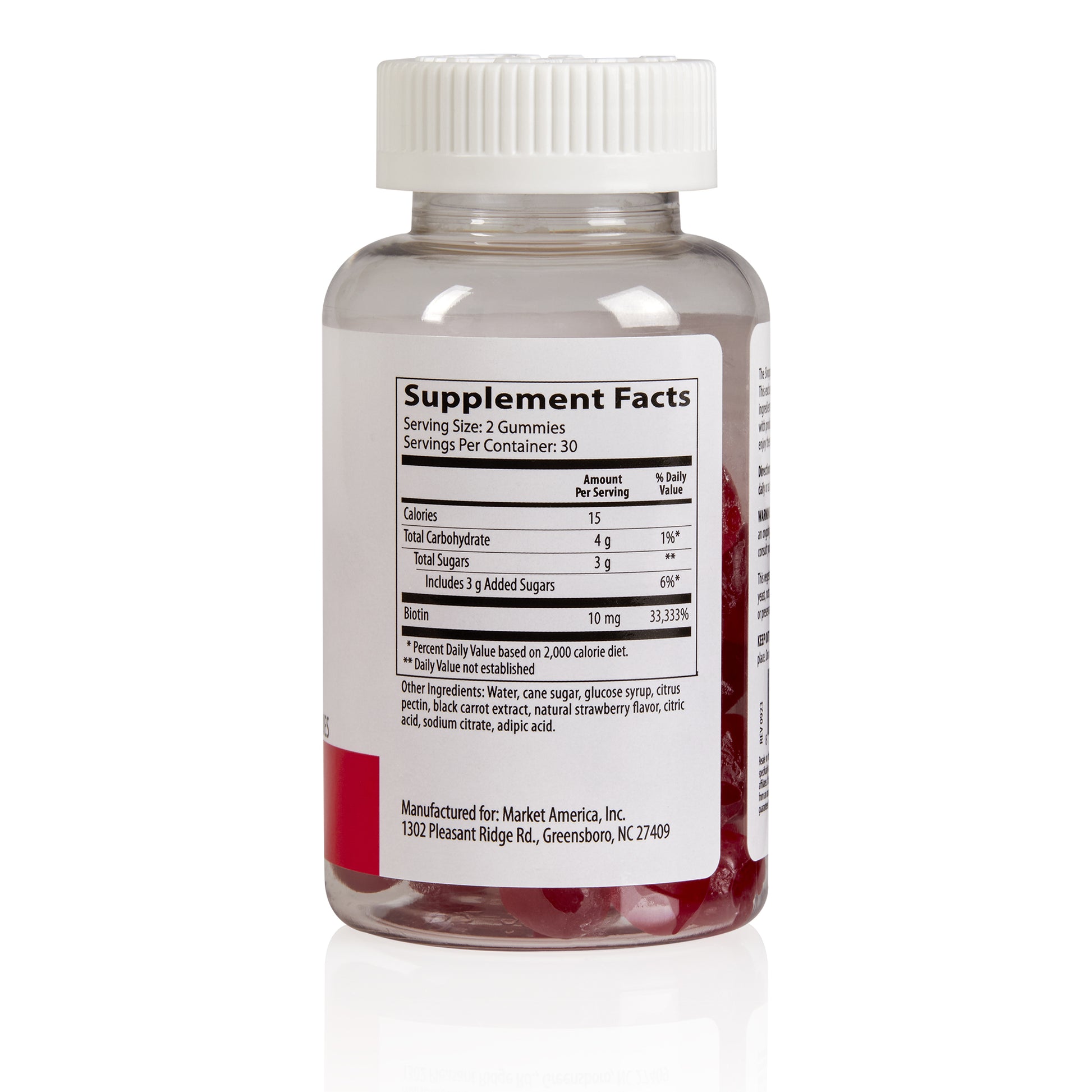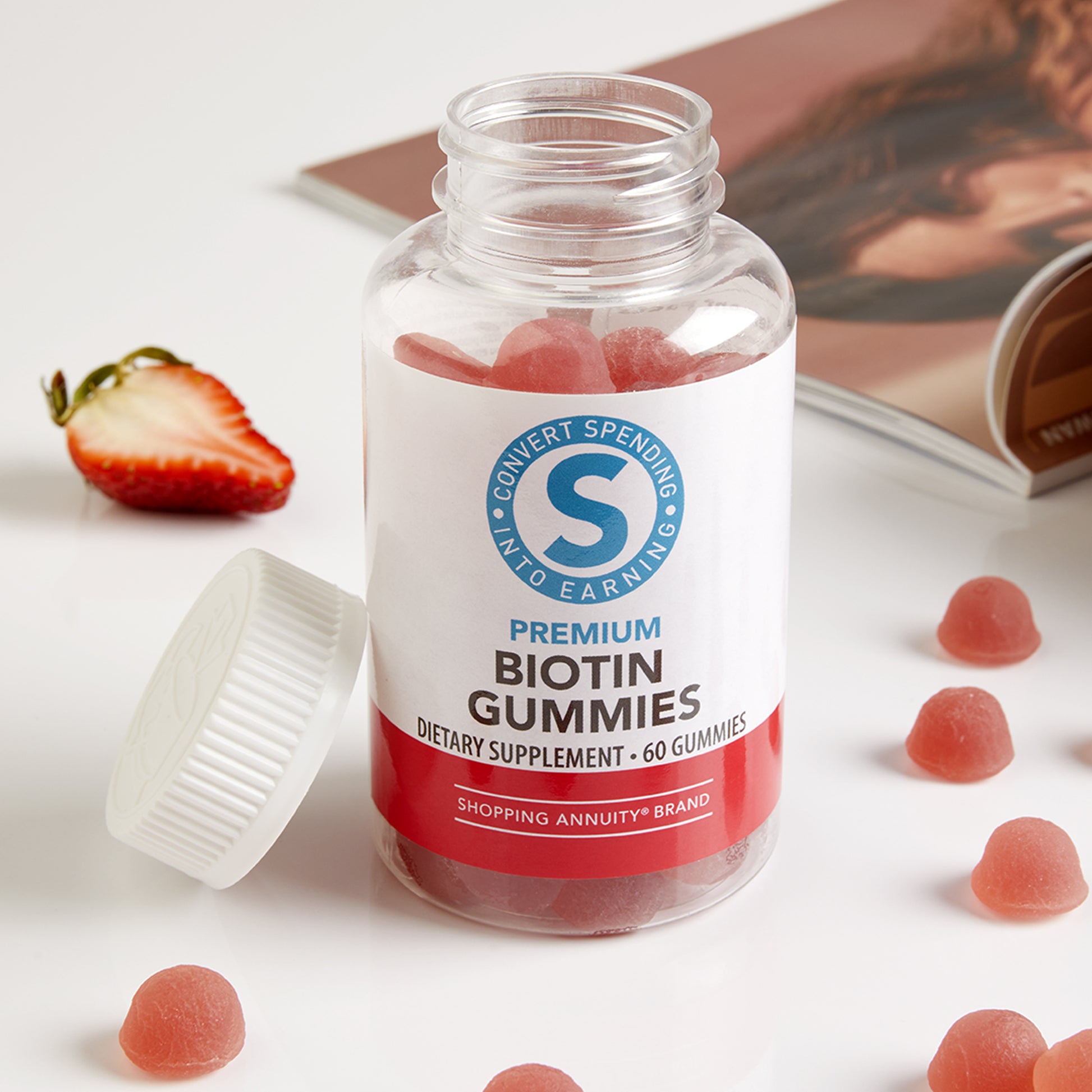 獲取每日所需維生素並非易事,而透過添加營養補充品則可使之輕而易舉。維生素對身體至關重要。然而,我們的身體無法合成部分維生素,如維生素B群,因此僅能透過飲食或營養補充品來獲得。生物素,有時也稱作維生素B7或維生素H,(源自德語詞彙haar和haut,意思是頭髮和皮膚),因其對頭髮、肌膚和指甲的健康益處而聞名。Shopping Annuity®精選生物素軟糖提供一種不含基改成分、不含麩質的素食營養補充品,蘊含多達10毫克的生物素,支援與能量代謝、美容及對碳水化合物和蛋白質利用有關的細胞健康,從而支援健康的神經系統功能。