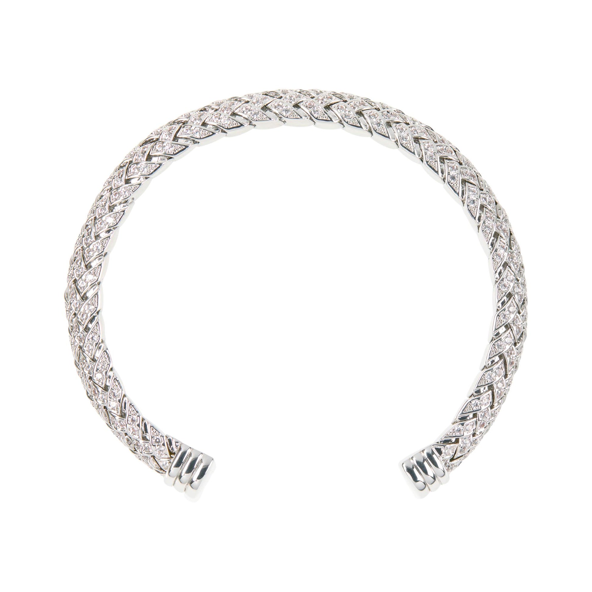 奪目不凡的精湛工藝使VALENTINA編織開口手環成為真正的目光焦點。柔韌的手鐲設計搭配複雜精美的編織紋樣,鑲嵌圓形明亮式切割的俄羅斯鑽 — VALENTINA編織開口手環閃耀奪目,令人過目難忘。