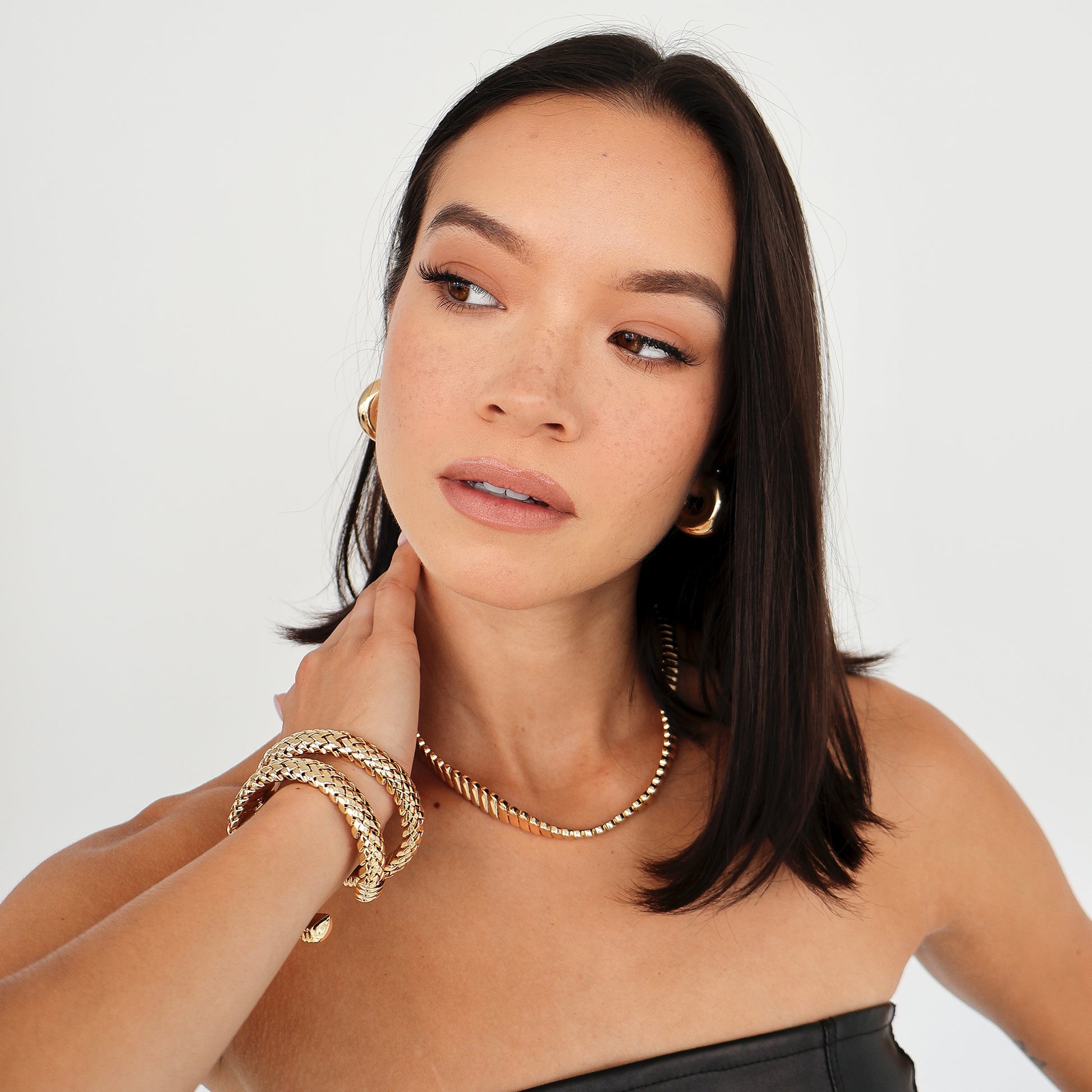 VALERIA編織開口手環,以其精湛工藝令人矚目,是獨具特色的臻品。柔韌的設計搭配複雜精美的編織紋樣,呈現出簡約而優雅的風格,令人過目難忘。