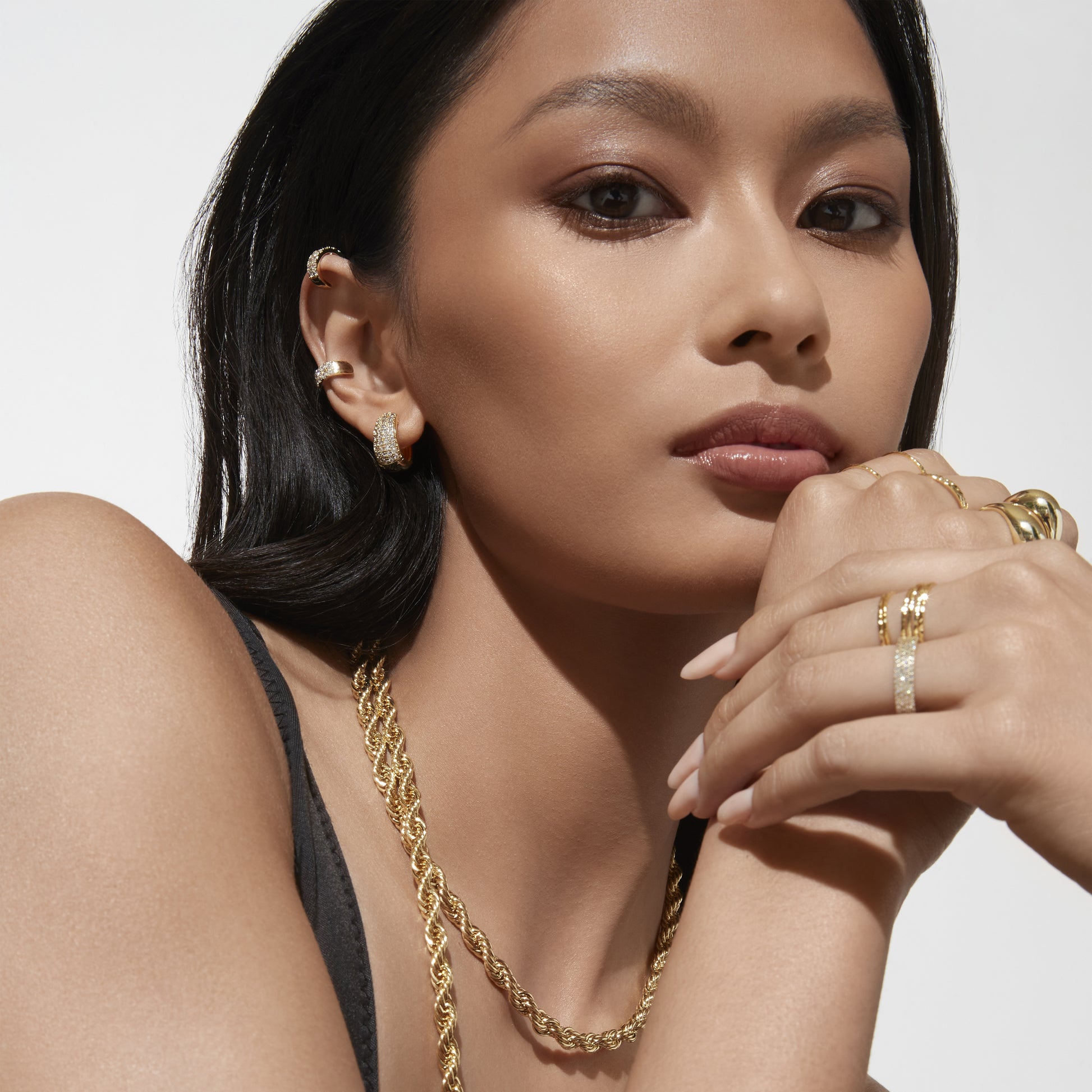簡約、時尚的閃耀密鑲鑽耳骨夾,為日常的耳環搭配增添一抹亮采。從耳垂底部滑入,輕輕向上移動,找到最舒適的位置。
